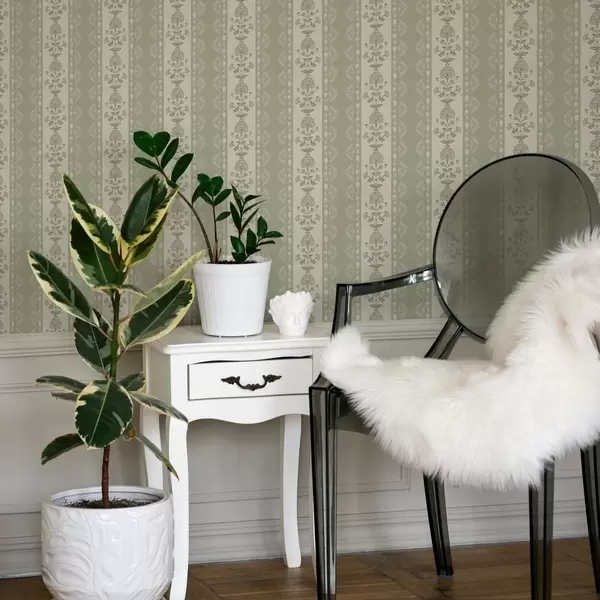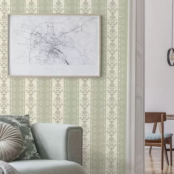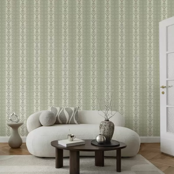Tapet Ornament cu dungi și coloane florale în nuanțe de salvie Nr. a00719