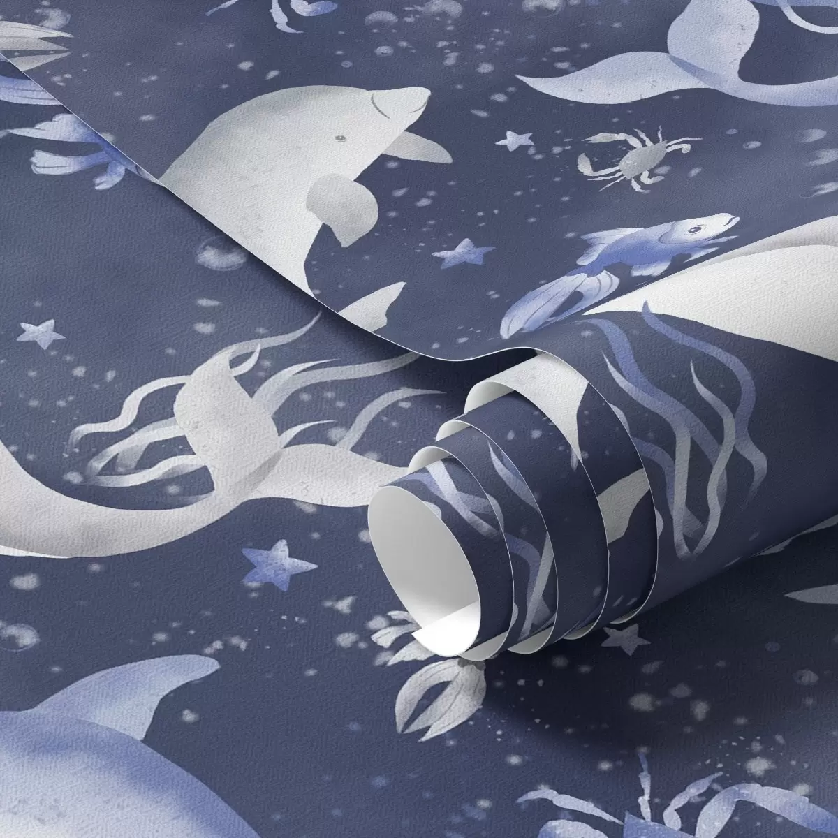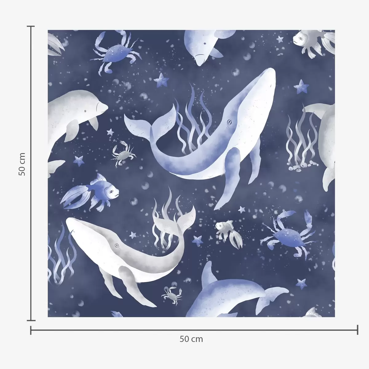 Tapet Balenele marine, delfinii și crabii pe un fundal albastru închis Nr. a00720