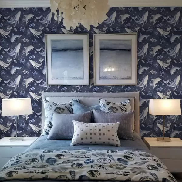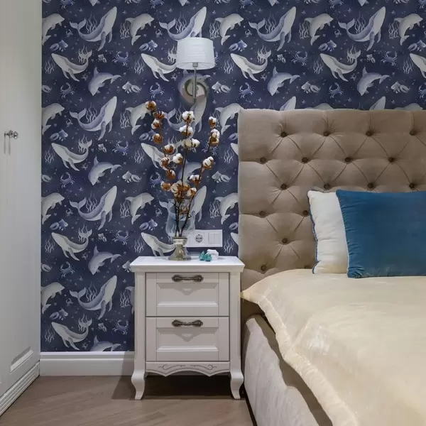 Tapet Balenele marine, delfinii și crabii pe un fundal albastru închis Nr. a00720