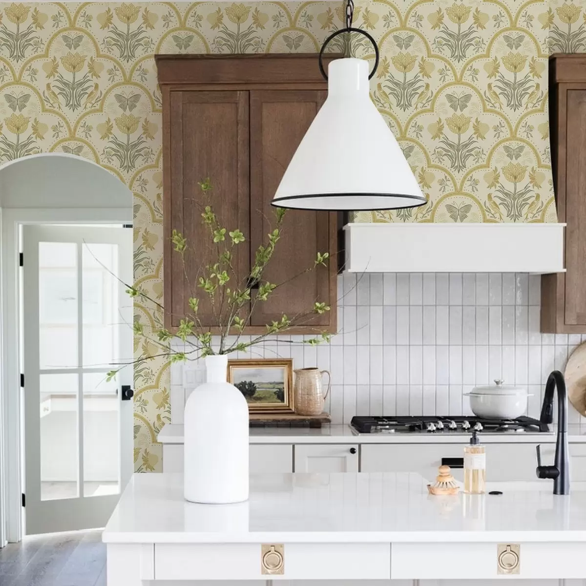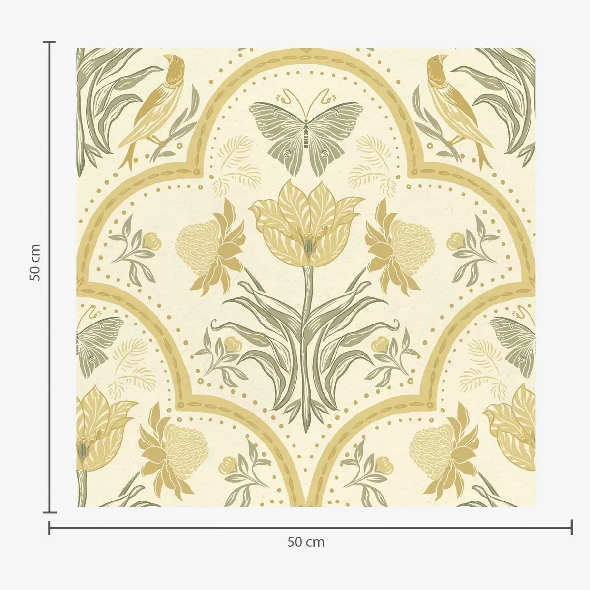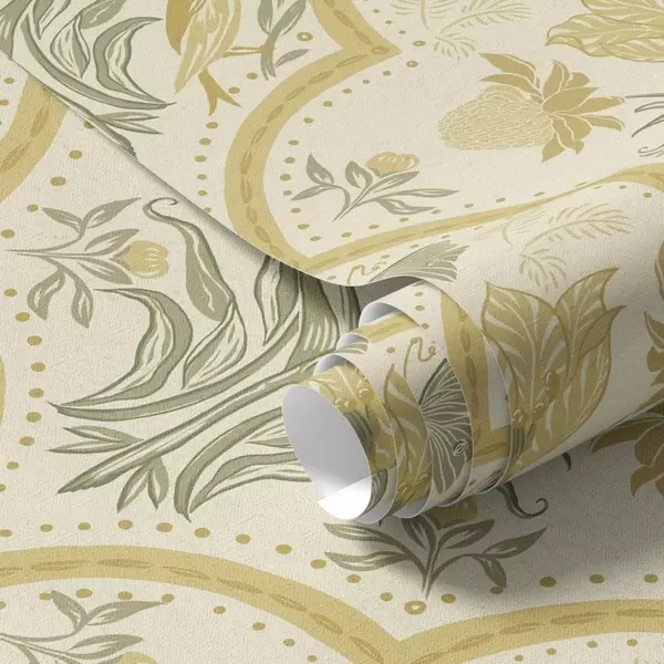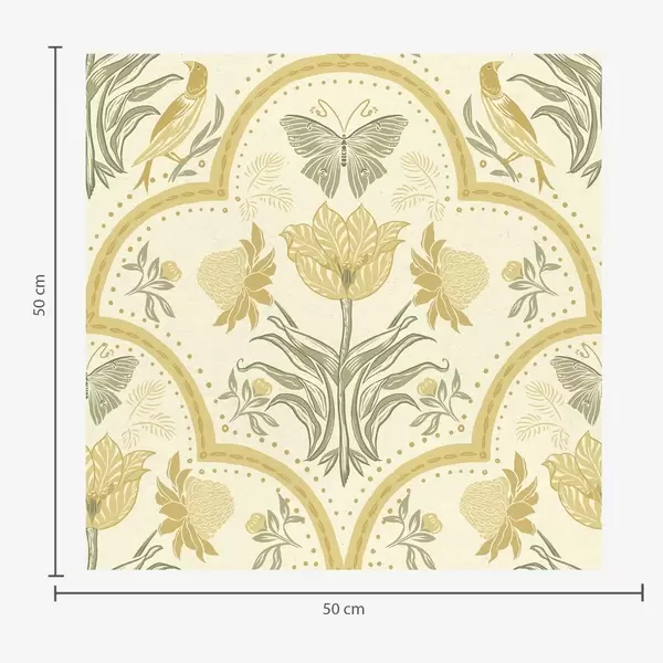 Tapet Ornament cu lalea, păsări și fluturi, ocru Nr. a00722