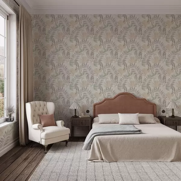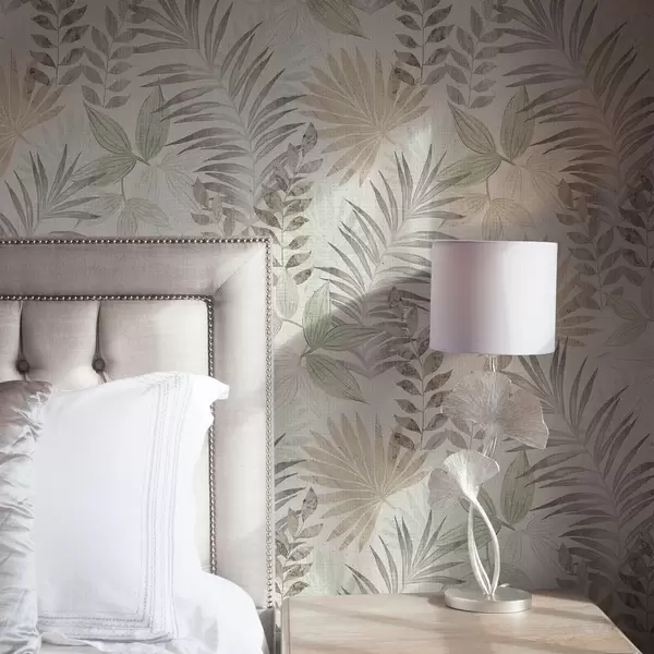Tapet Frunze tropicale pastelate pe un fundal deschis, textură subtilă Nr. a00725