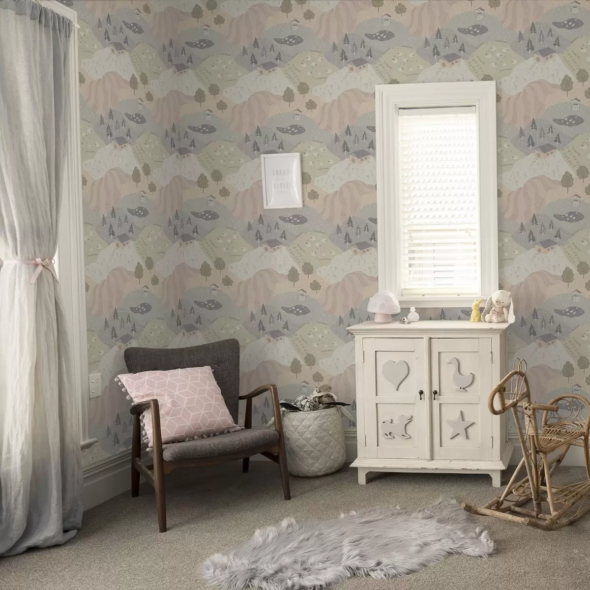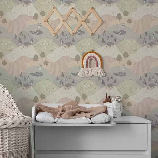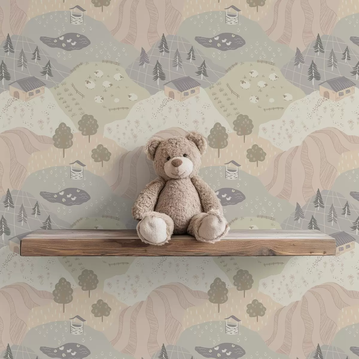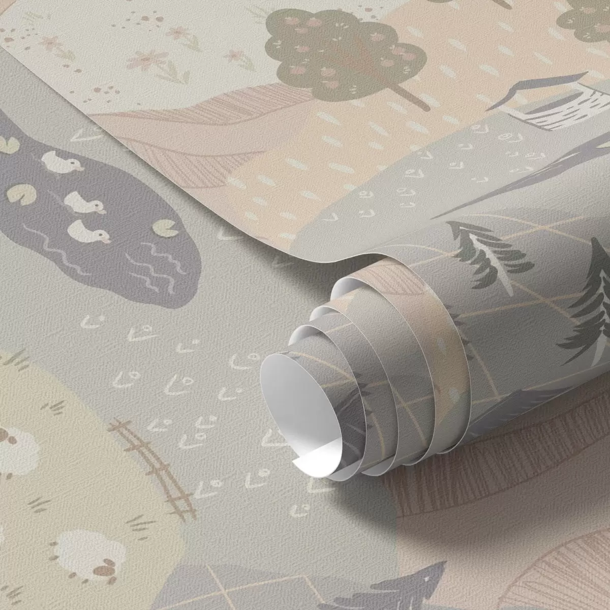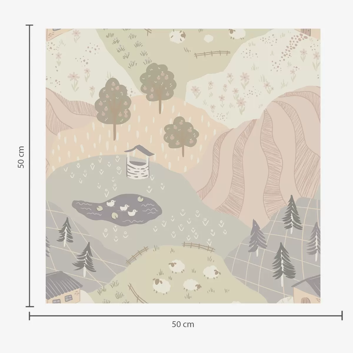 Tapet Peisaj rural de basm, cu copaci, gâște și oi Nr. a00728