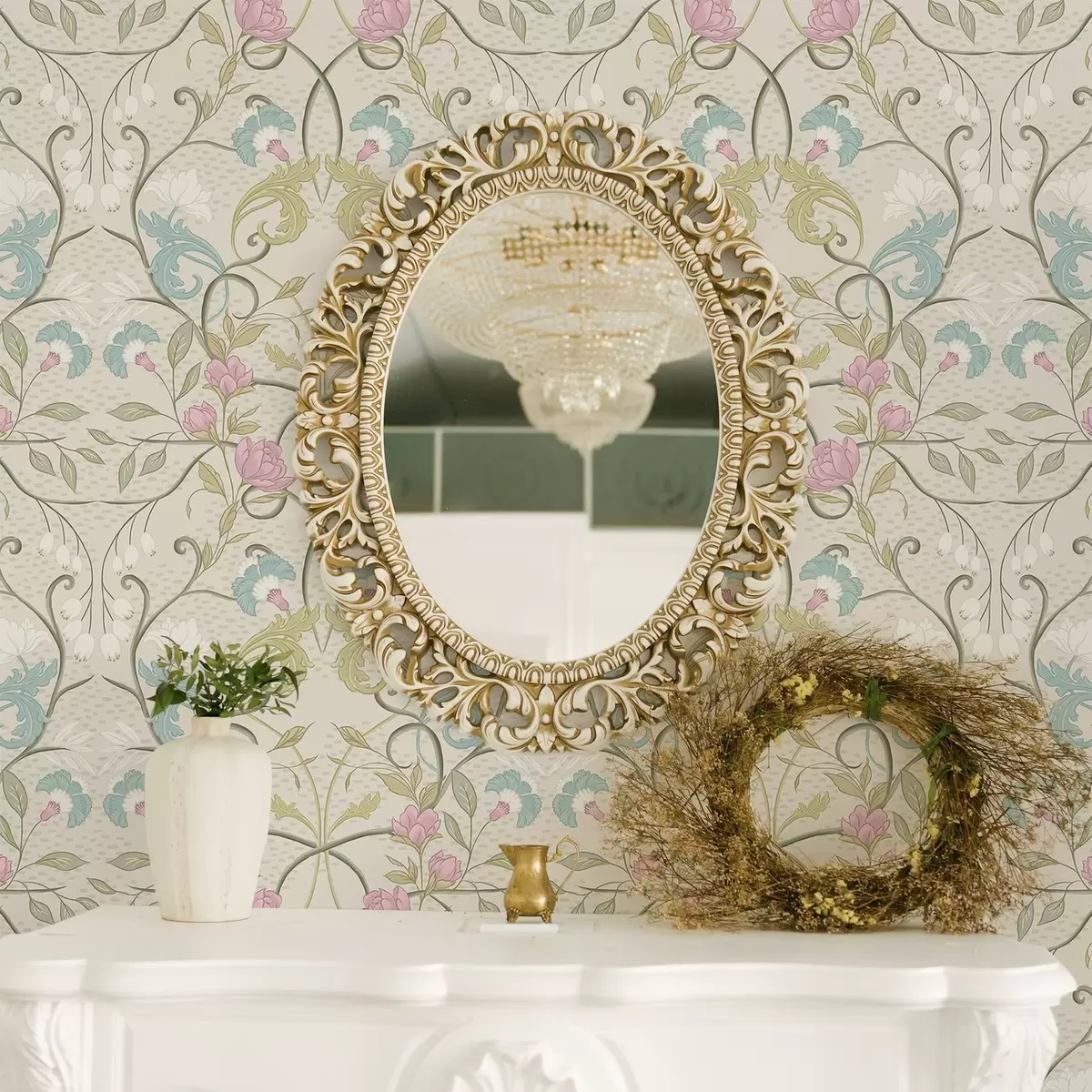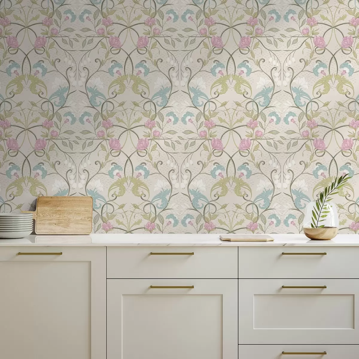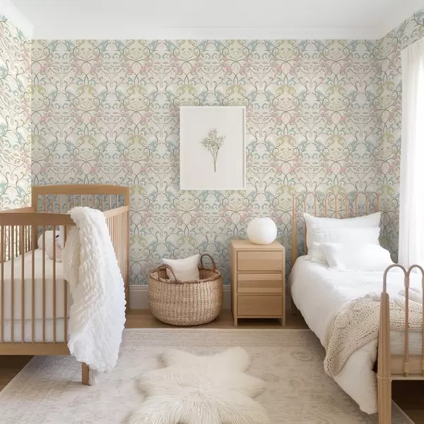 Tapet Model floral elegant cu flori roz și albastre Nr. a00730