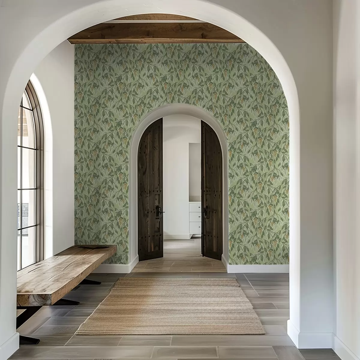 Tapet Ramuri cu ciorchini de fructe de pădure pe fundal verde Nr. a00734
