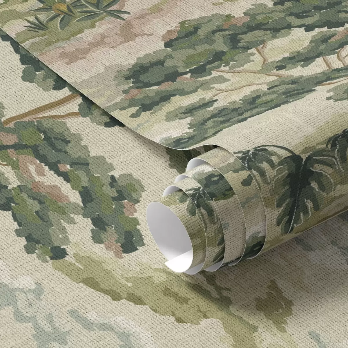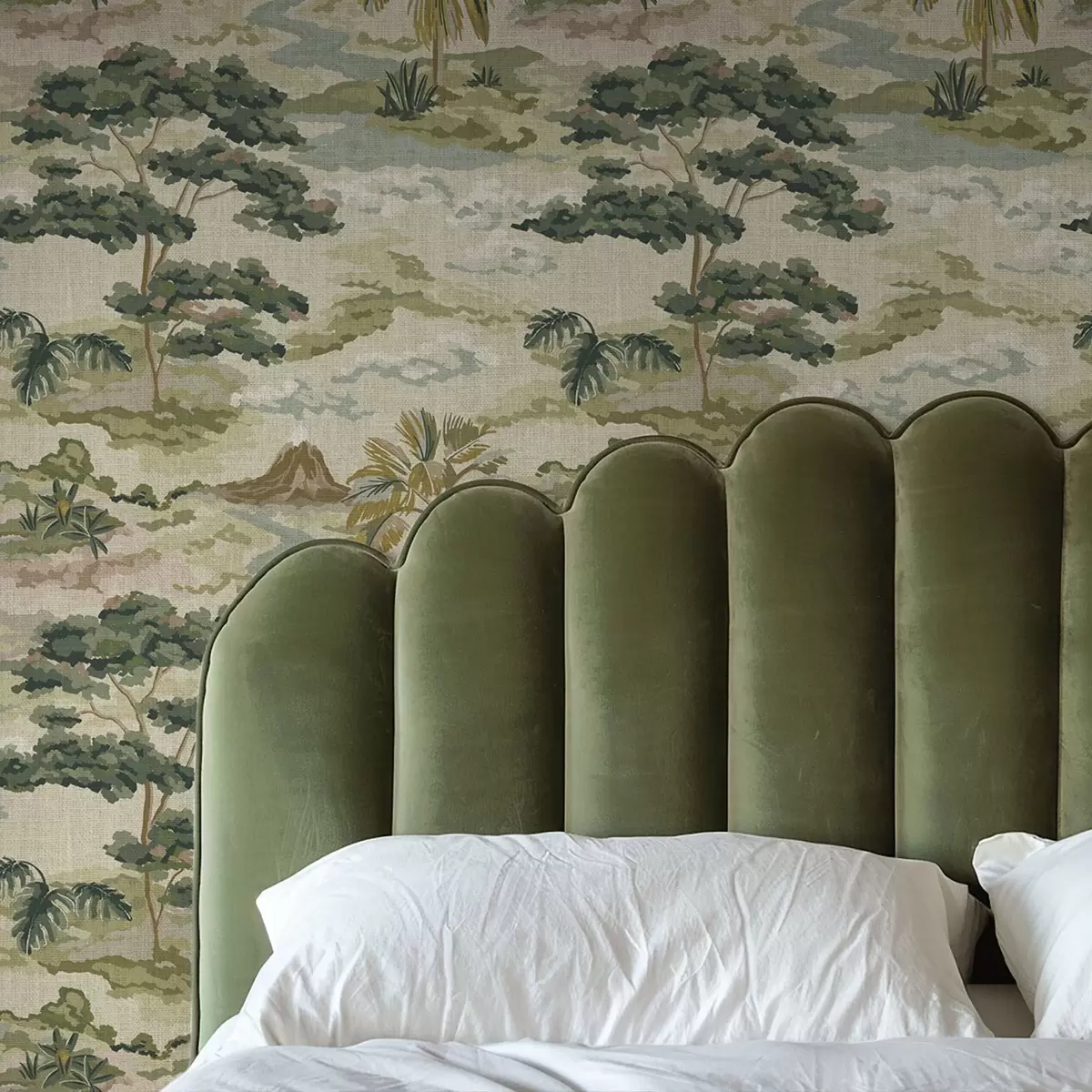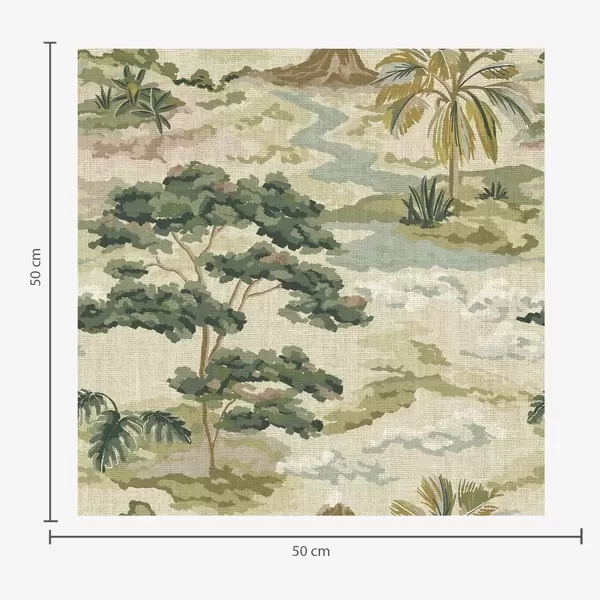 Tapet Peisaj cu râu, copaci și palmieri în tonuri delicate Nr. a00736