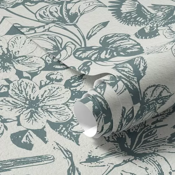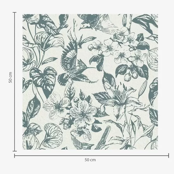 Tapet Ornament floral monocrom cu păsări Nr. a00737