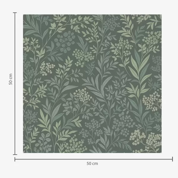 Tapet Ierburi și fructe de pădure de smarald, model botanic fin Nr. a00740