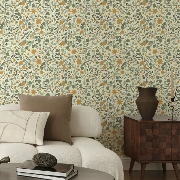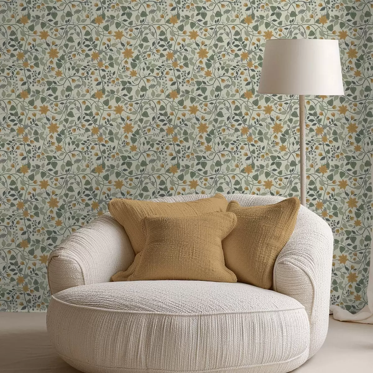 Tapet Ramuri florale cățărătoare cu flori galbene și fructe de pădure Nr. a00750