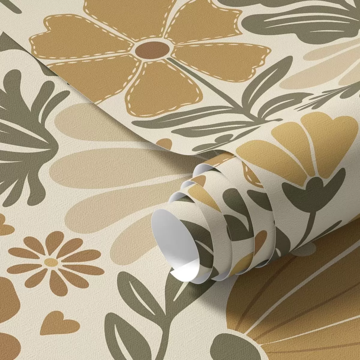Tapet Flori stilizate în tonuri calde cu inimioare Nr. a00752