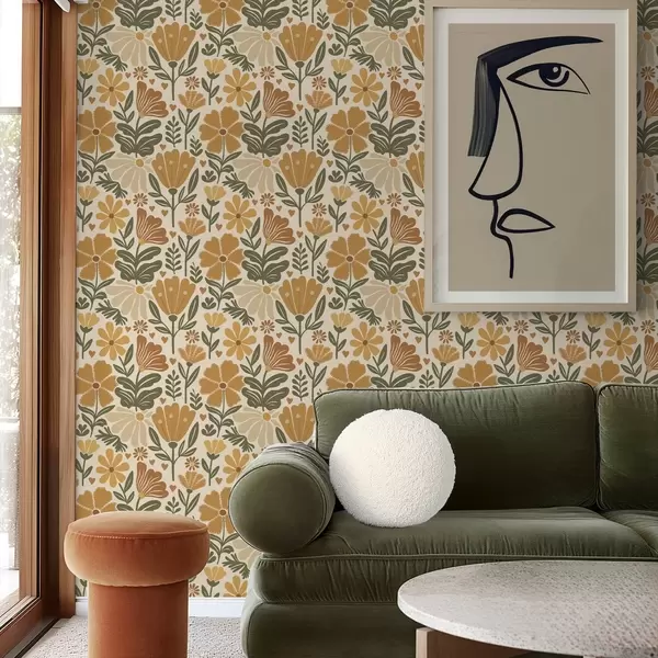 Tapet Flori stilizate în tonuri calde cu inimioare Nr. a00752