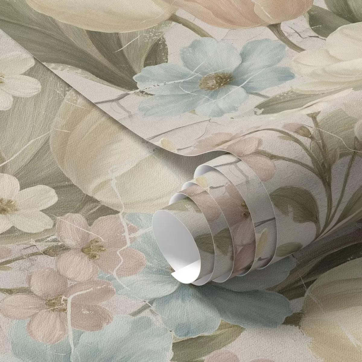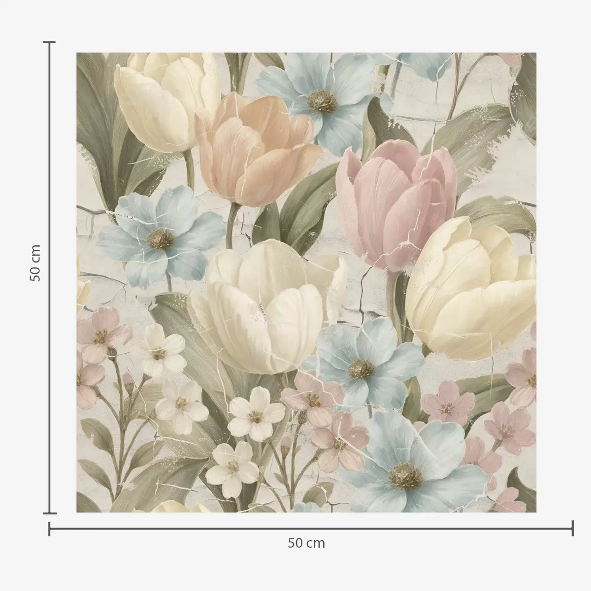 Tapet Lalele și flori pastelate pe fundal deschis, crăpat Nr. a00756