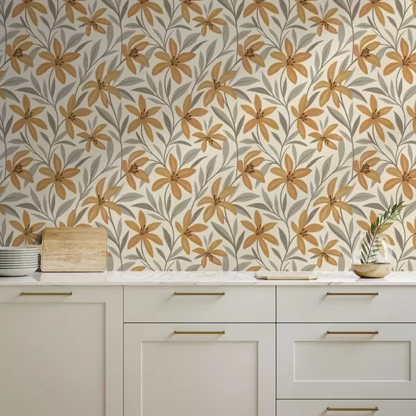 Tapet Crini galbeni și frunze gri-verzui pe fundal deschis Nr. a00757