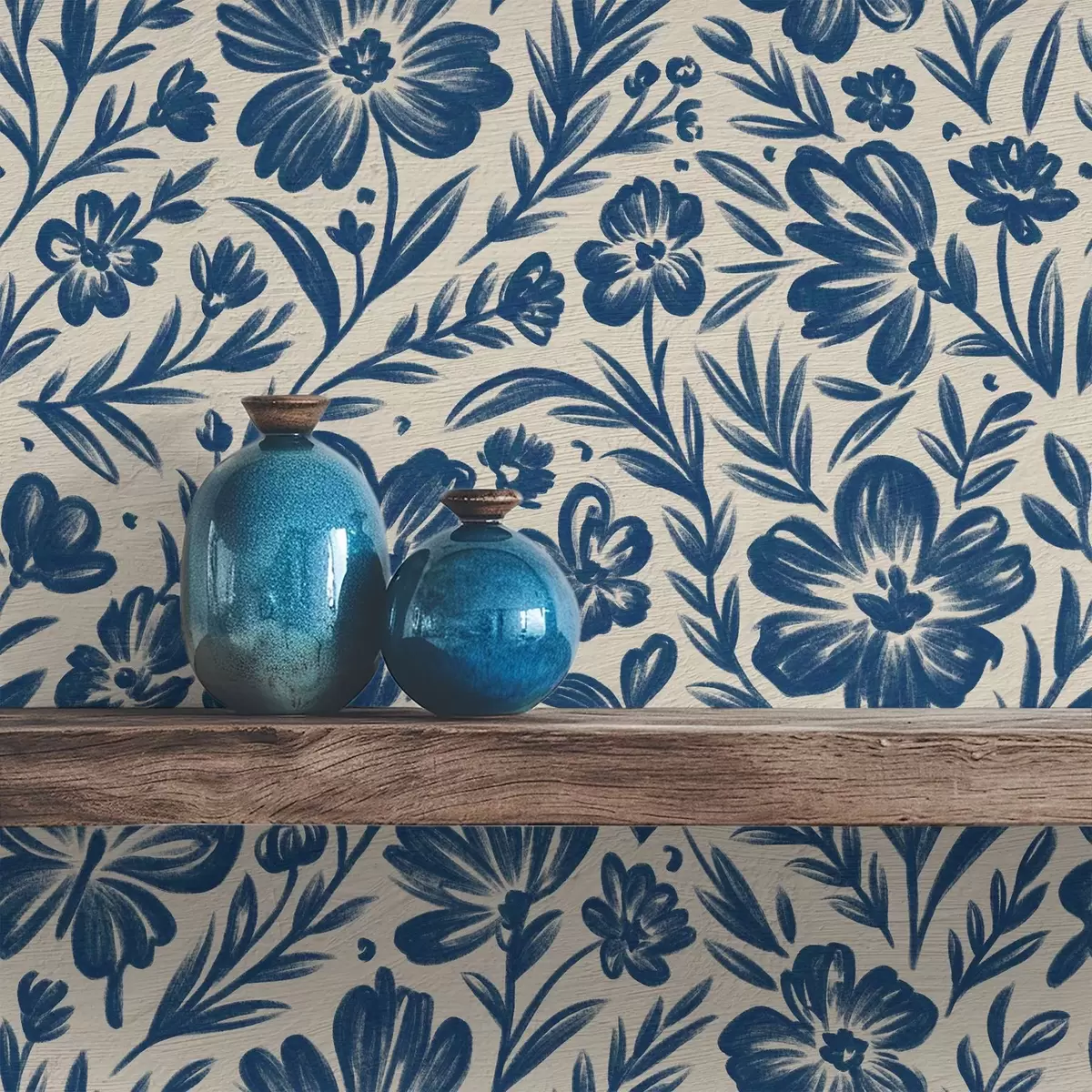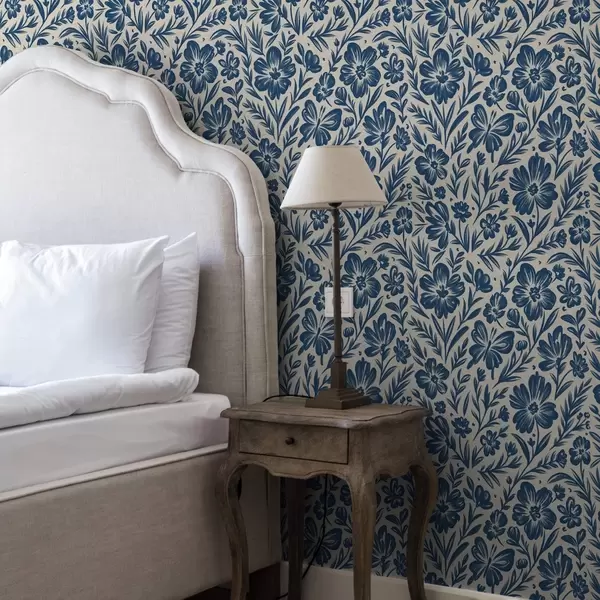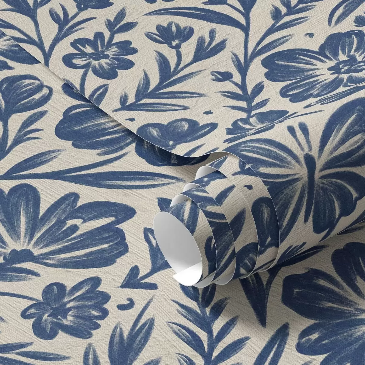 Tapet Ornament floral albastru cu fluturi Nr. a00758