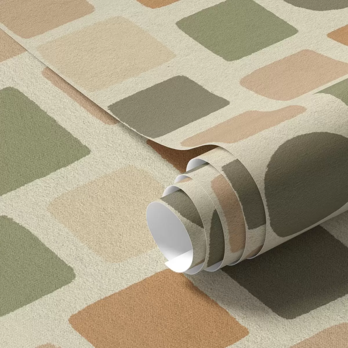 Tapet Model geometric din pătrate și cercuri în tonuri calde Nr. a00759