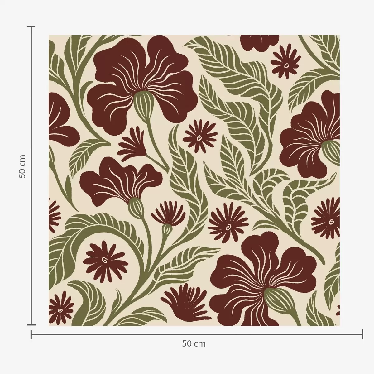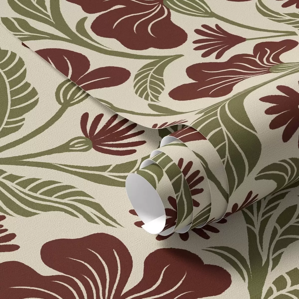 Tapet Flori burgund cu frunze verzi pe fundal deschis Nr. a00761