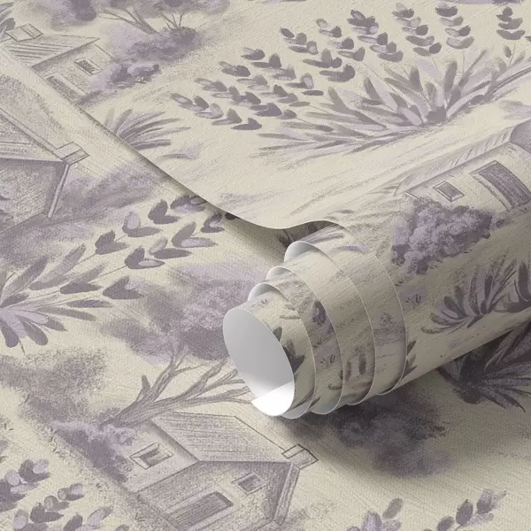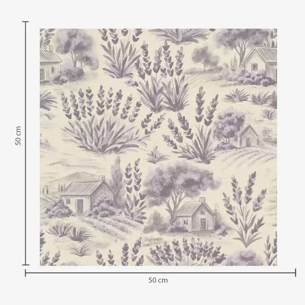 Tapet Câmpuri de lavandă și case în tonuri pastelate Nr. a00765