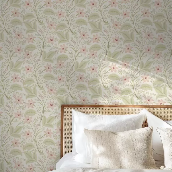 Tapet Flori și frunze delicate în tonuri pastelate Nr. a00771