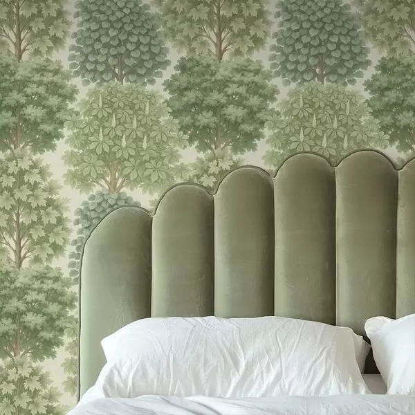 Tapet Grădină cu copaci în nuanțe delicate de verde pe un fundal deschis Nr. a00775
