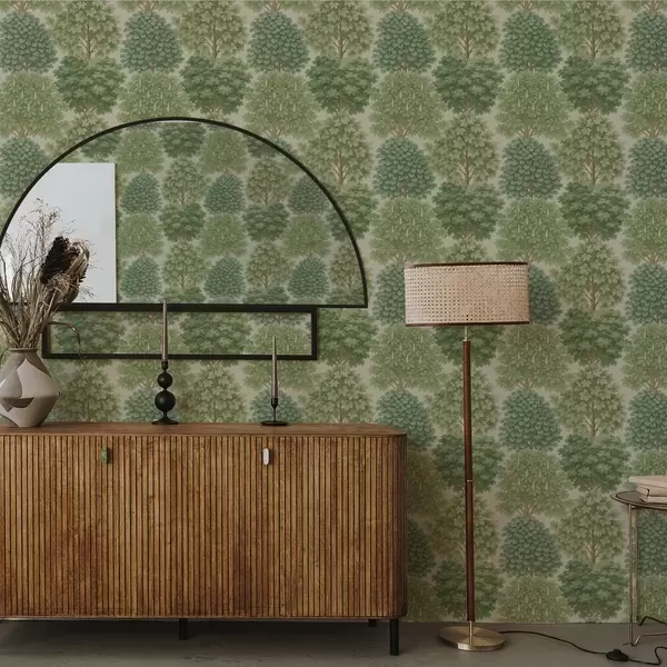 Tapet Grădină cu copaci în nuanțe delicate de verde pe un fundal deschis Nr. a00775