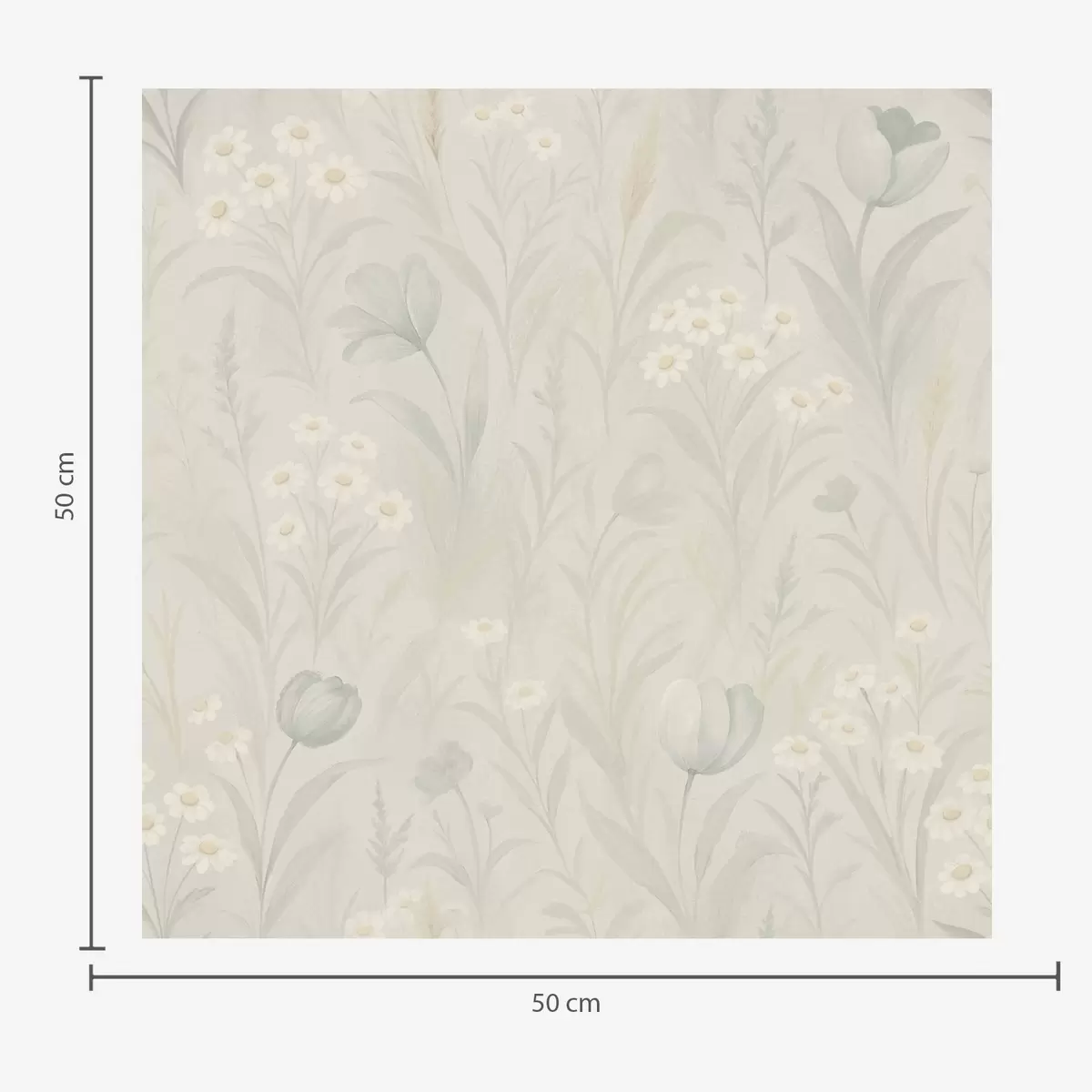 Tapet Pajiște delicată cu lalele și margarete, salvie pastelată Nr. a00779