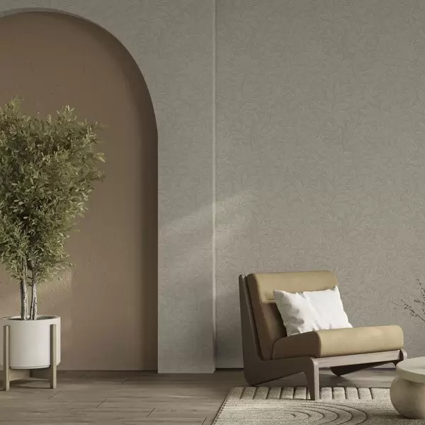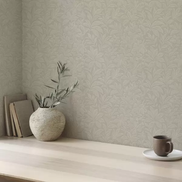 Tapet Siluete de frunze în relief, culoare gri-bej caldă Nr. a00781