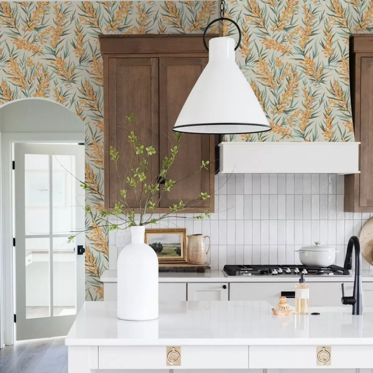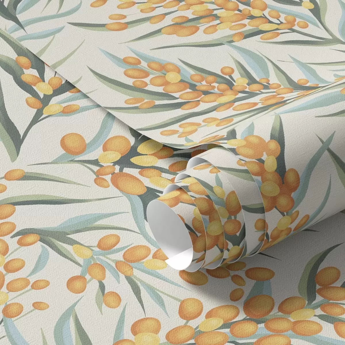 Tapet Ramuri de cătină cu fructe portocalii, fundal deschis Nr. a00792
