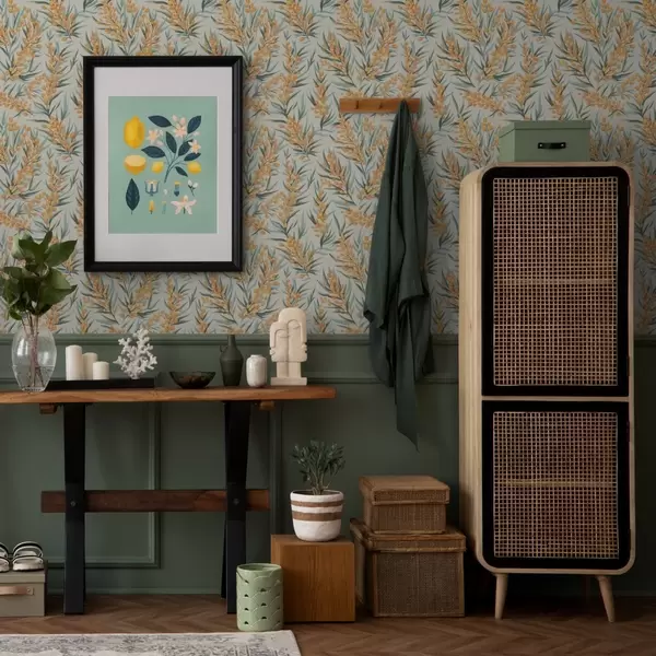 Tapet Ramuri de cătină cu fructe portocalii, fundal deschis Nr. a00792
