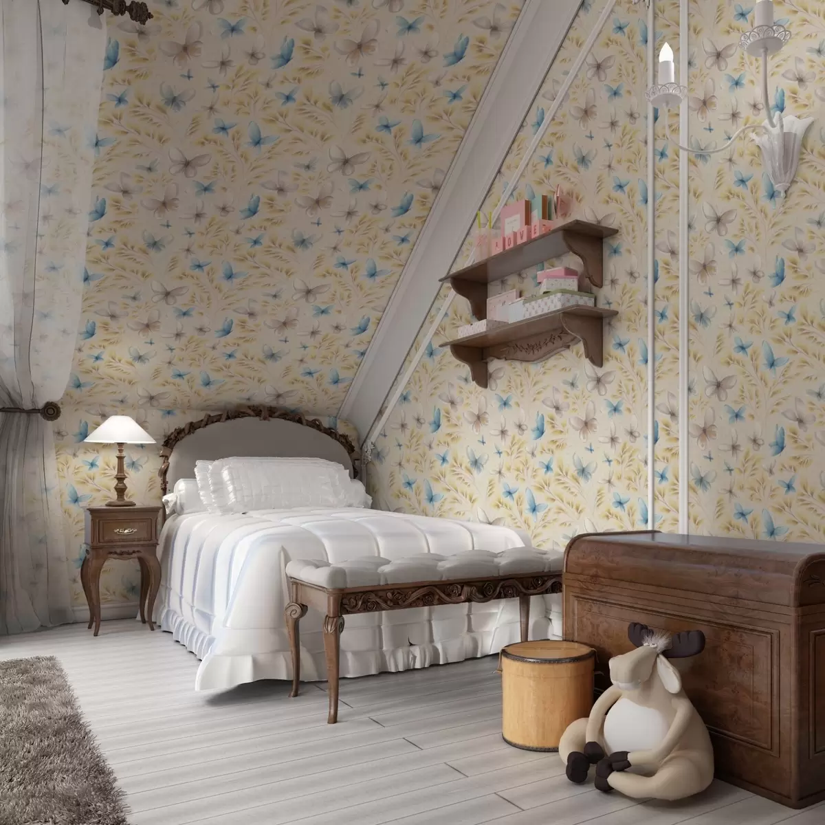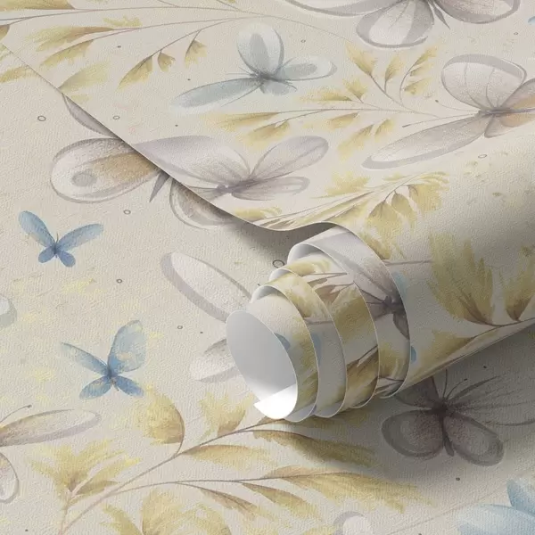 Tapet Fluturi ușori printre frunze galbene pe un fundal deschis Nr. a00795