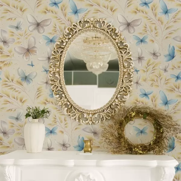 Tapet Fluturi ușori printre frunze galbene pe un fundal deschis Nr. a00795