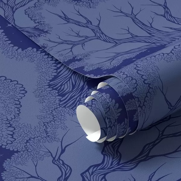 Tapet Siluete de copaci sub un cer înstelat în nuanțe de albastru Nr. a00798