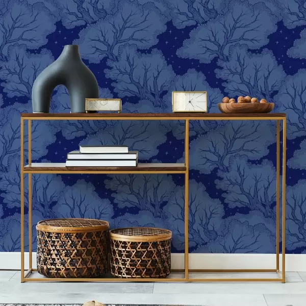 Tapet Siluete de copaci sub un cer înstelat în nuanțe de albastru Nr. a00798