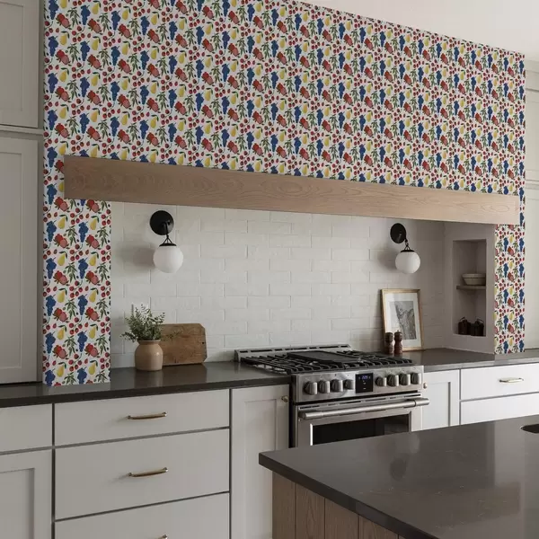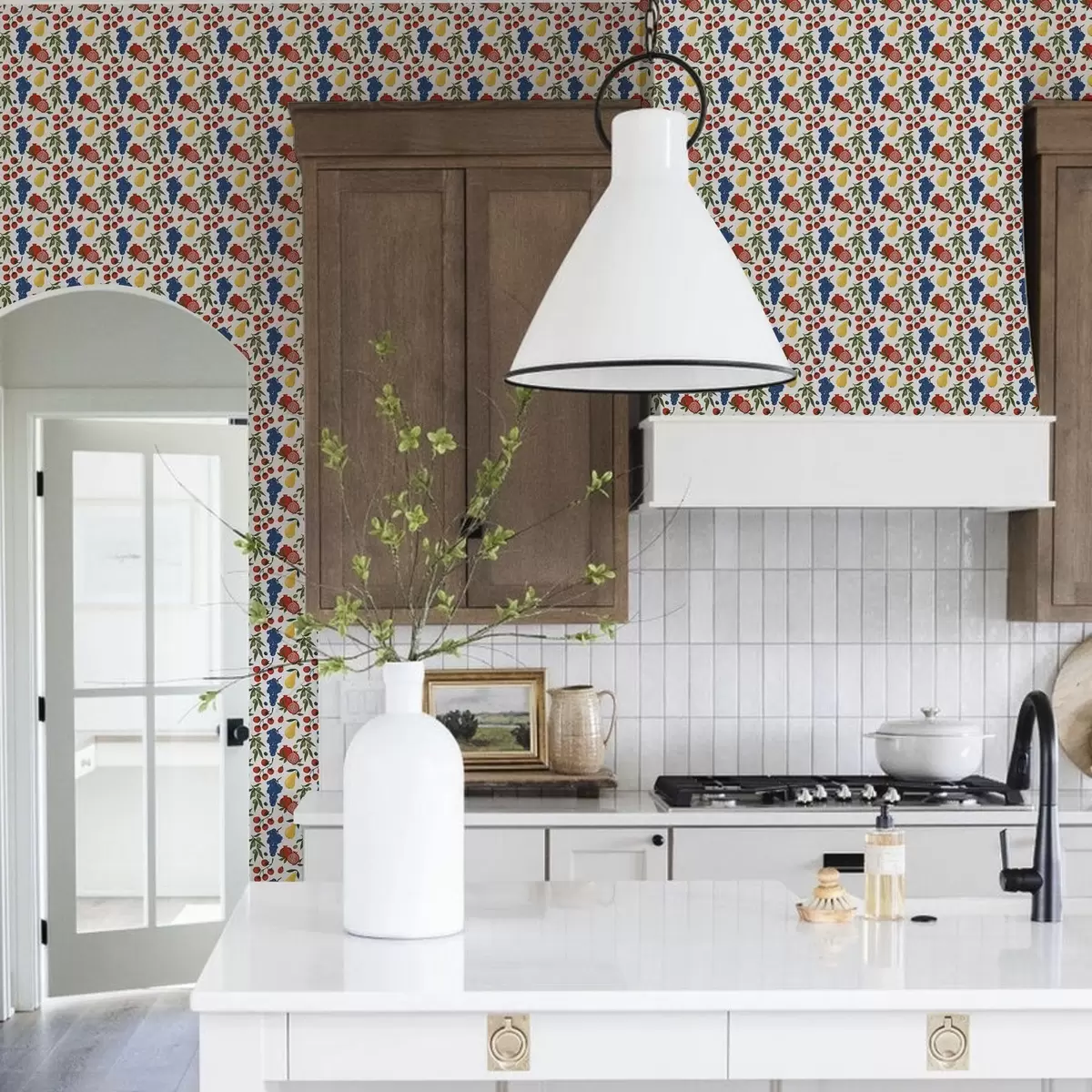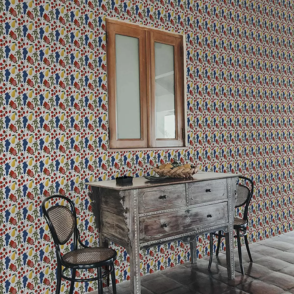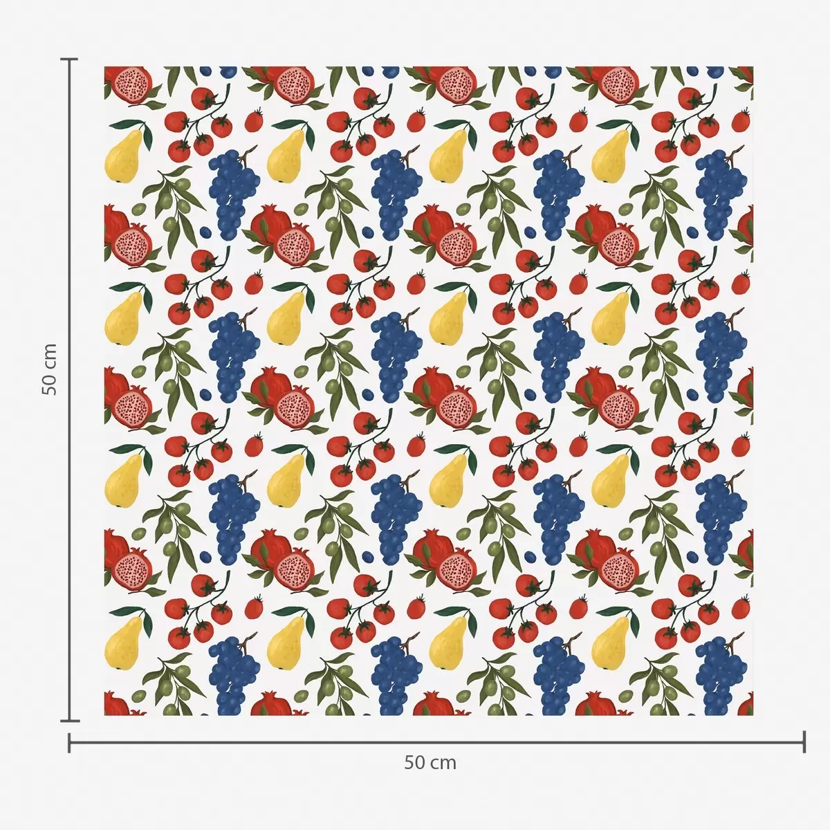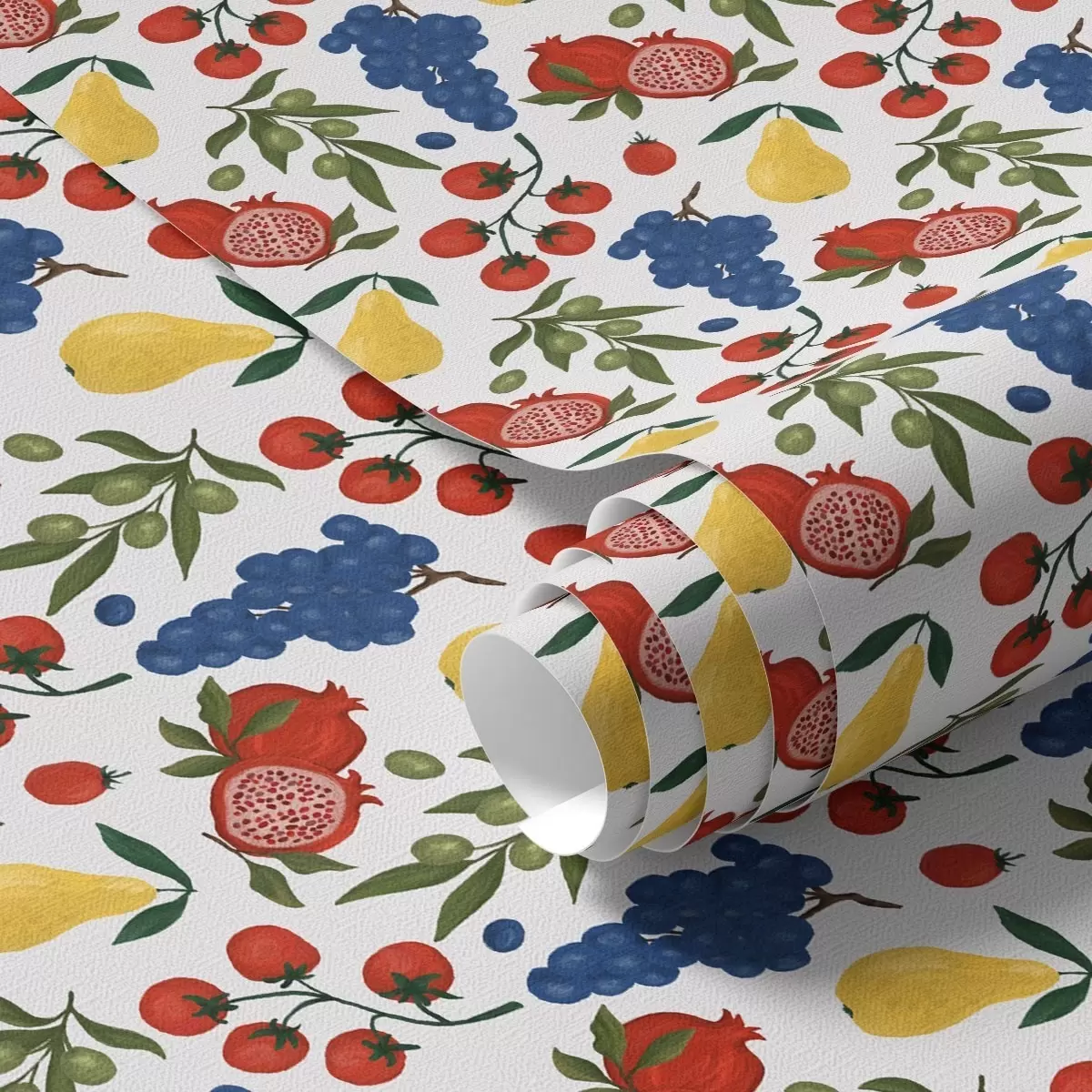 Tapet Fructe suculente: rodii, struguri, pere pe fond alb Nr. a00801