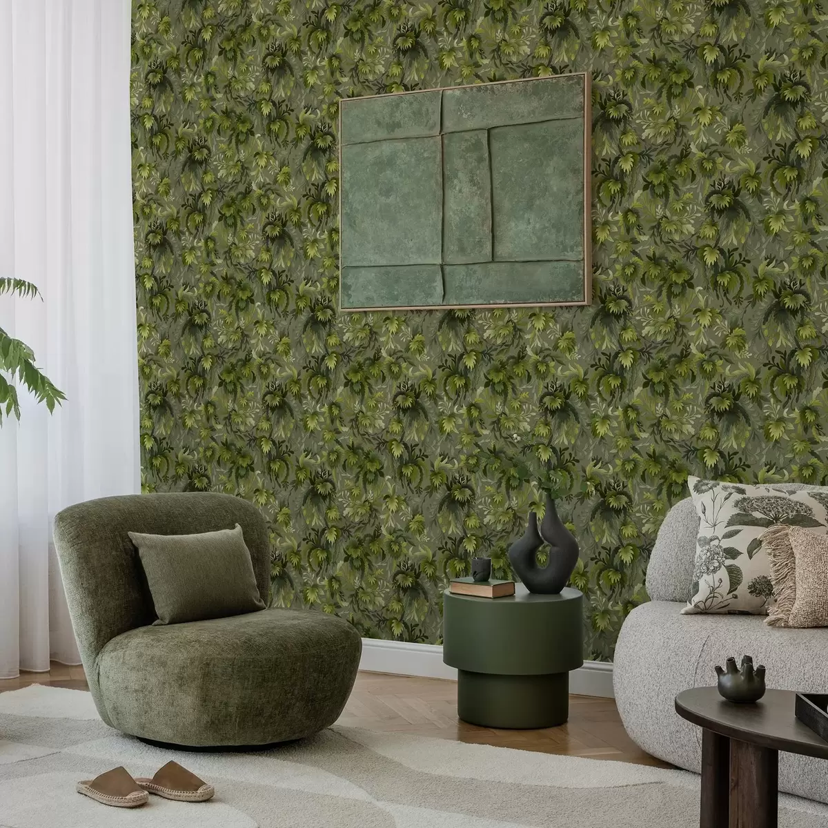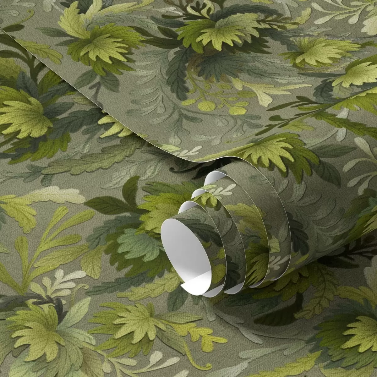 Tapet Frunziș dens verde pe un fundal gri-verde Nr. a00805v1