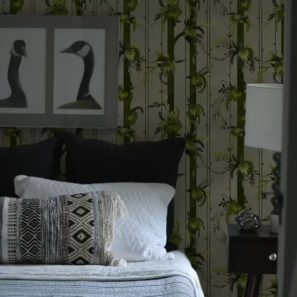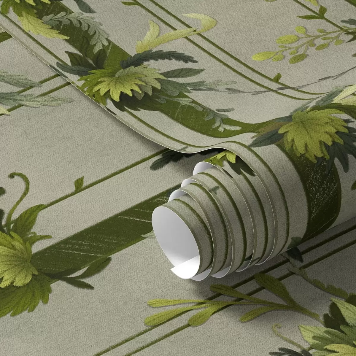 Tapet Frunze verzi în dungi verticale pe fond gri Nr. a00807v1