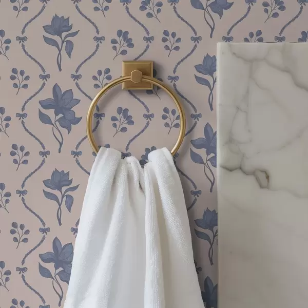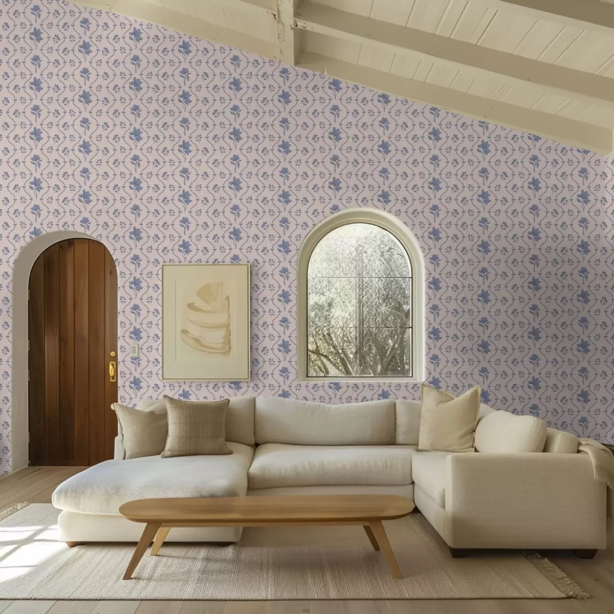 Tapet Flori mici și panglici în nuanțe de albastru și roz Nr. a00808v3
