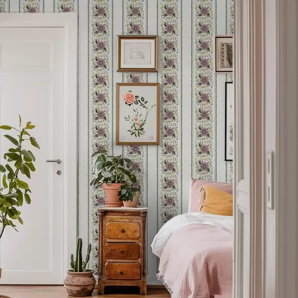 Wallpaper Dungi florale verticale în tonuri de albastru-lila a00809