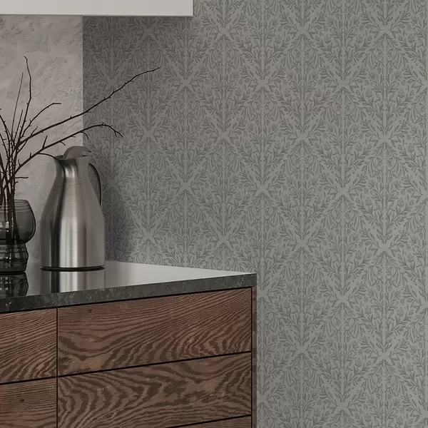 Tapet Damasc botanic în culoare gri deschis cu contururi delicate Nr. a00815v2