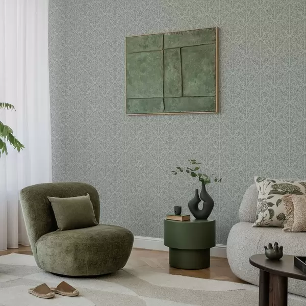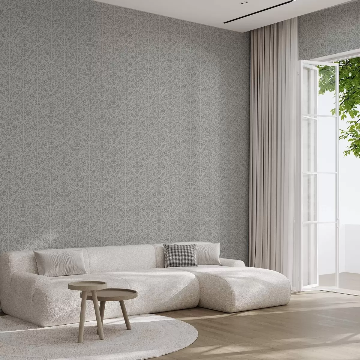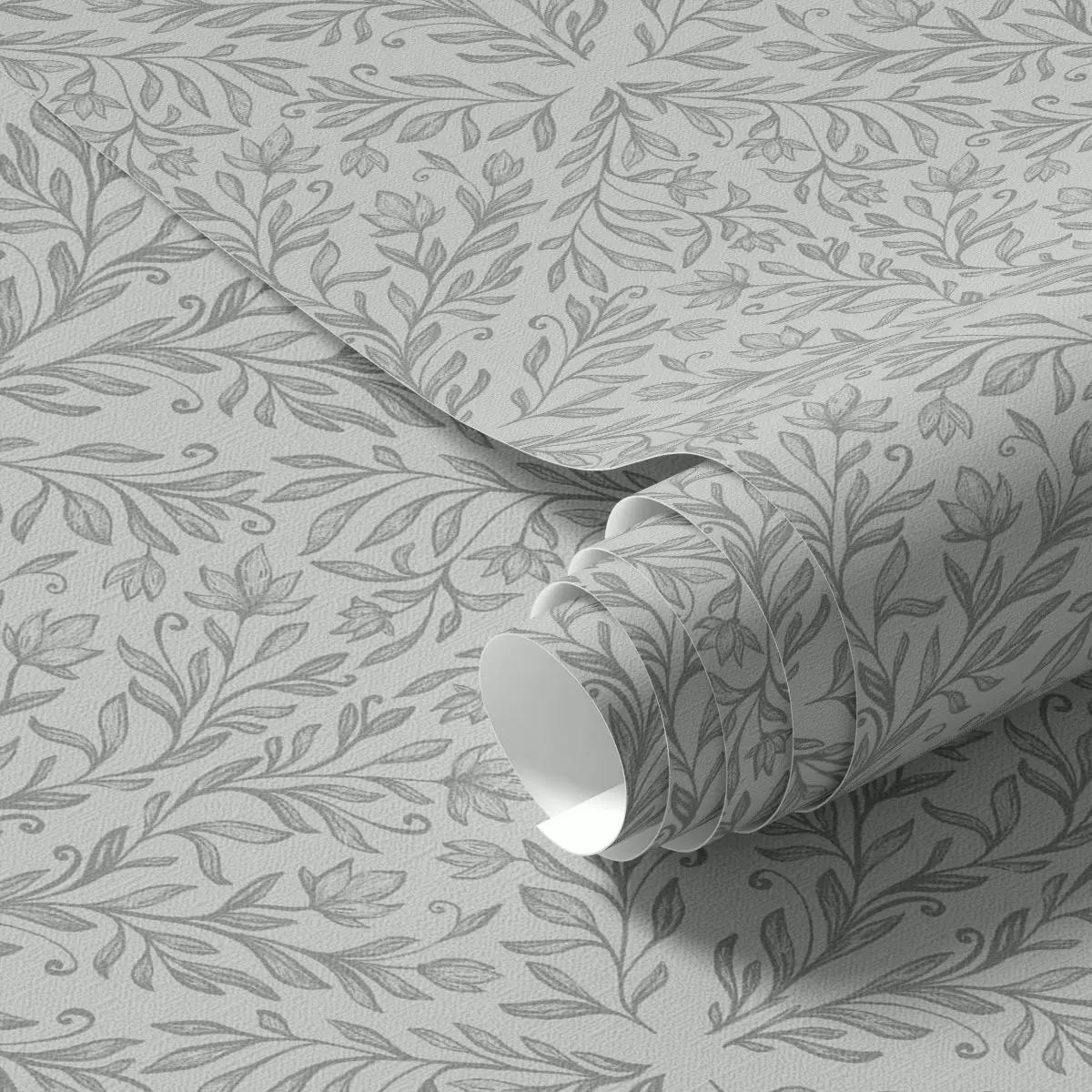 Tapet Damasc botanic în culoare gri deschis cu contururi delicate Nr. a00815v2