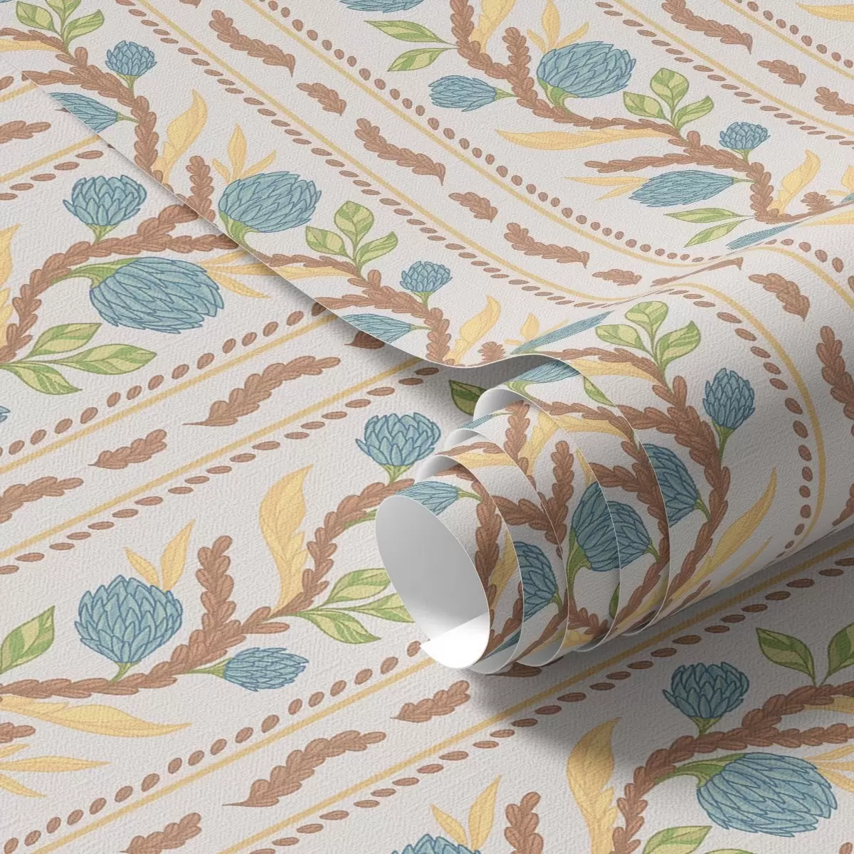Tapet Dungi verticale cu flori albastre pe un fundal cald Nr. a00816v3