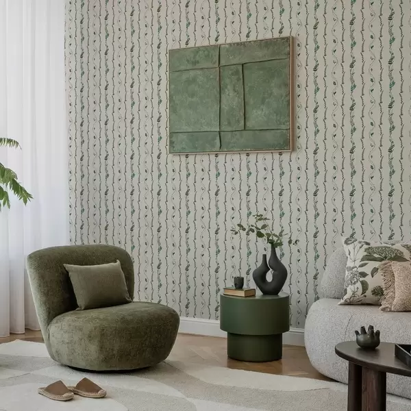 Tapet Liane subțiri de eucalipt pe fundal bej Nr. a00817