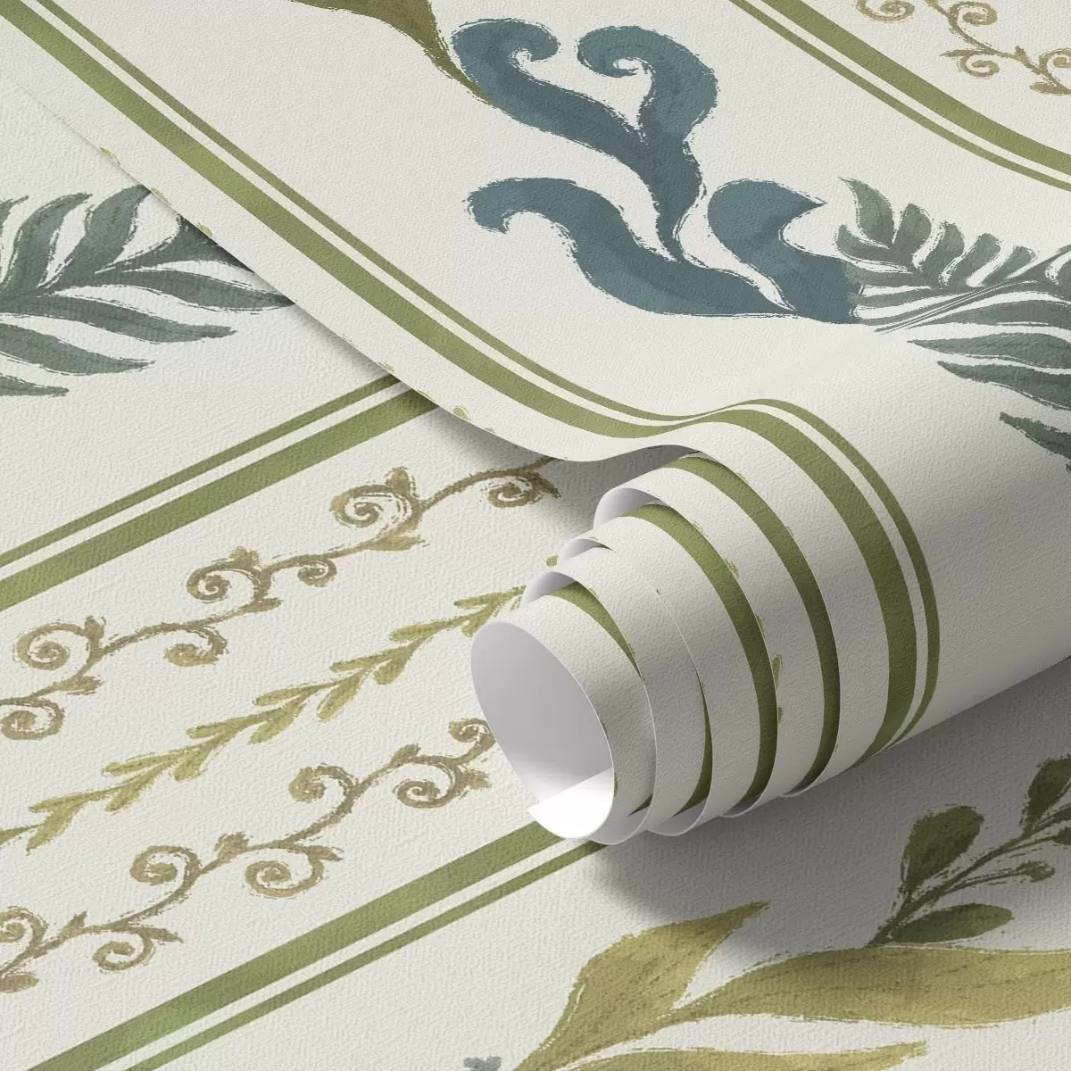 Tapet Dungi cu ornamente în formă de volute și ramuri mari în nuanțe de verde Nr. a00823