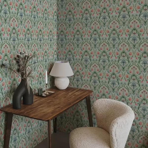 Tapet Ornament floral simetric, paletă de culori mentă-crem Nr. a00827v1