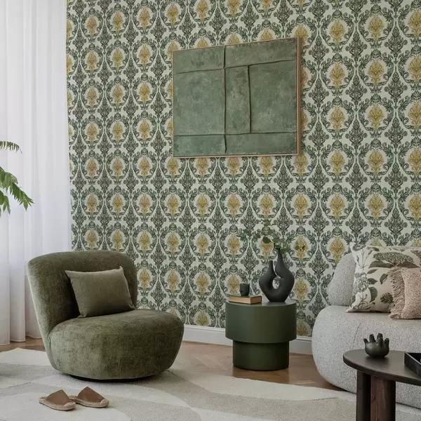 Tapet Damasc cu volute verzi pe fond deschis Nr. a00828v1
