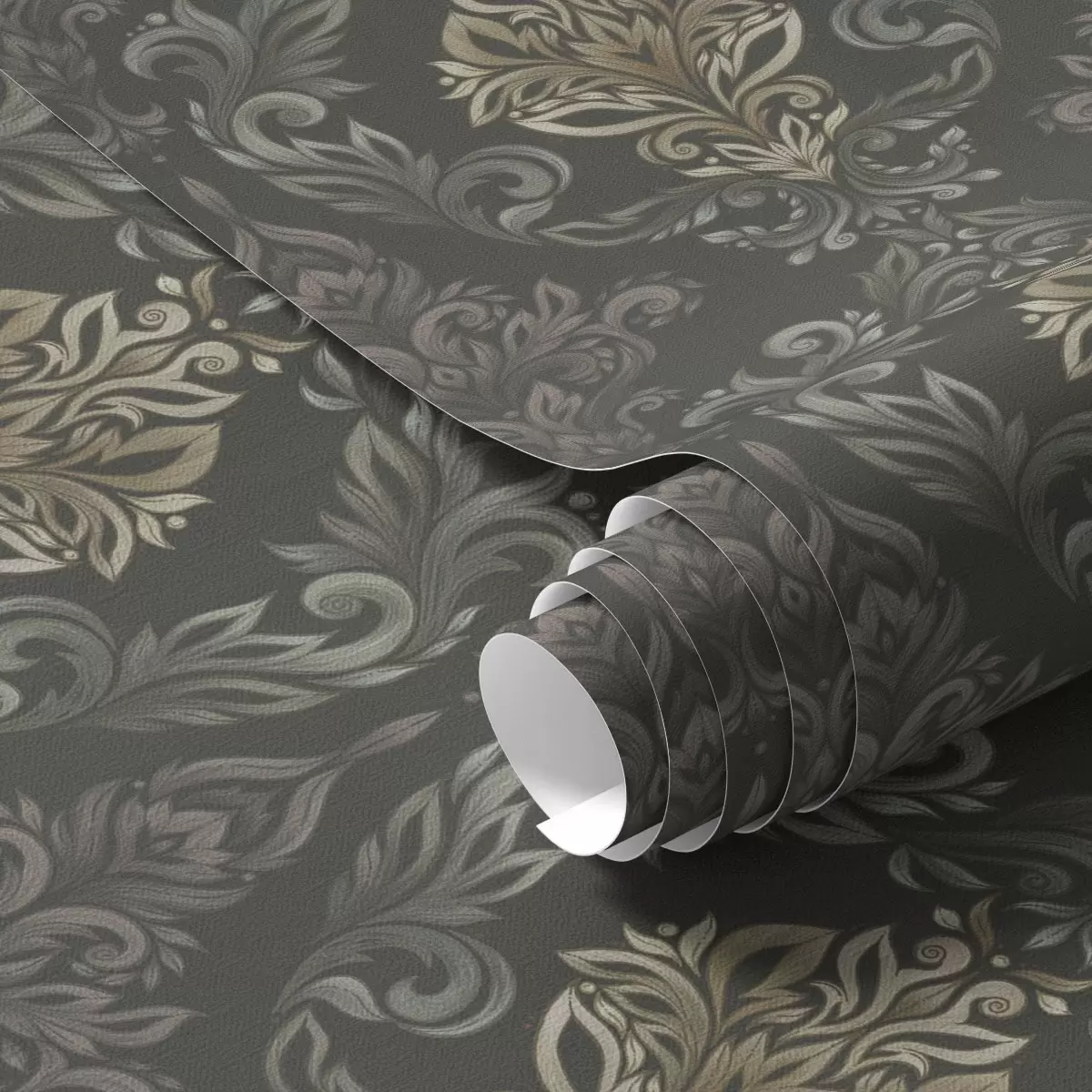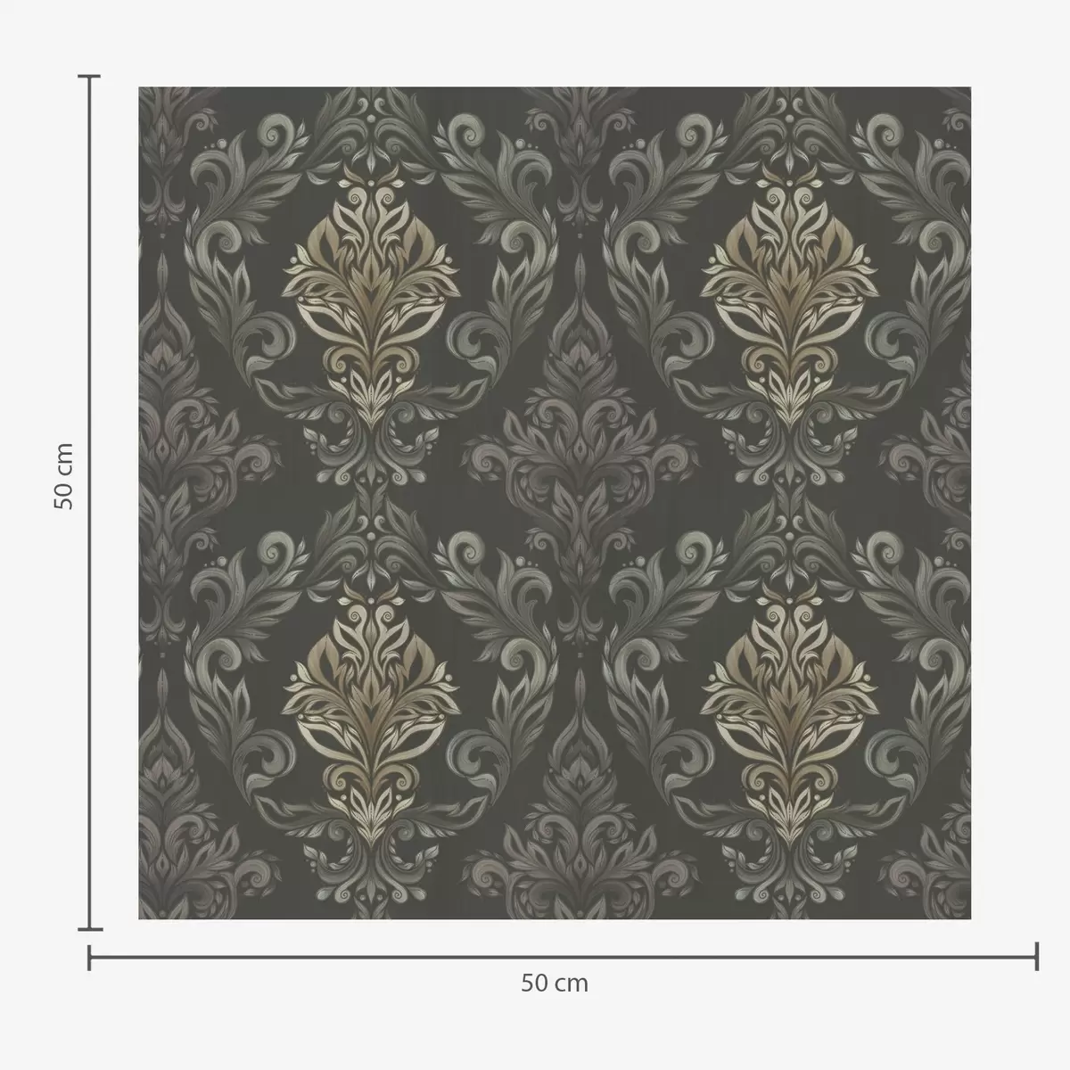 Tapet Damasc pe fond grafit închis, accente de ocru măslin Nr. a00828v5