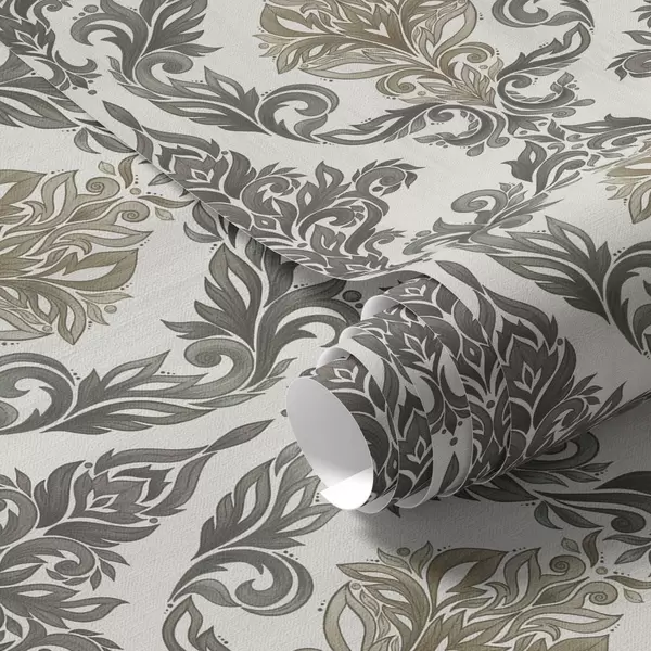 Tapet Damasc pe fond deschis, accente de bronz-măsliniu Nr. a00828v6