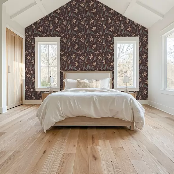 Tapet Flori crem cu frunze gri pe fond burgund Nr. a00833
