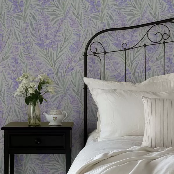 Tapet Ramuri de lavandă în nuanțe de violet pe un fundal deschis Nr. a00835