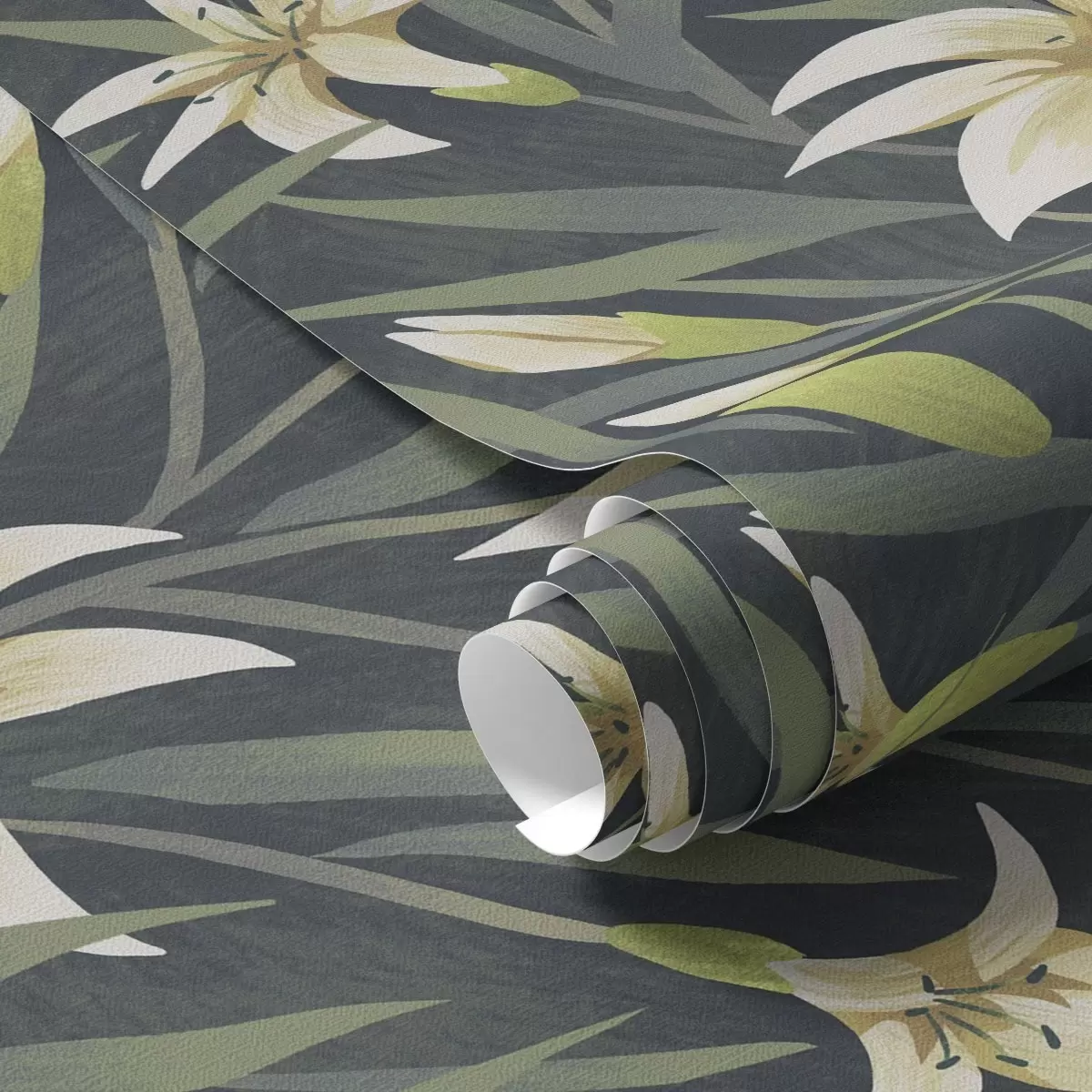 Tapet Crini crem cu frunze pe fundal închis Nr. a00837v1