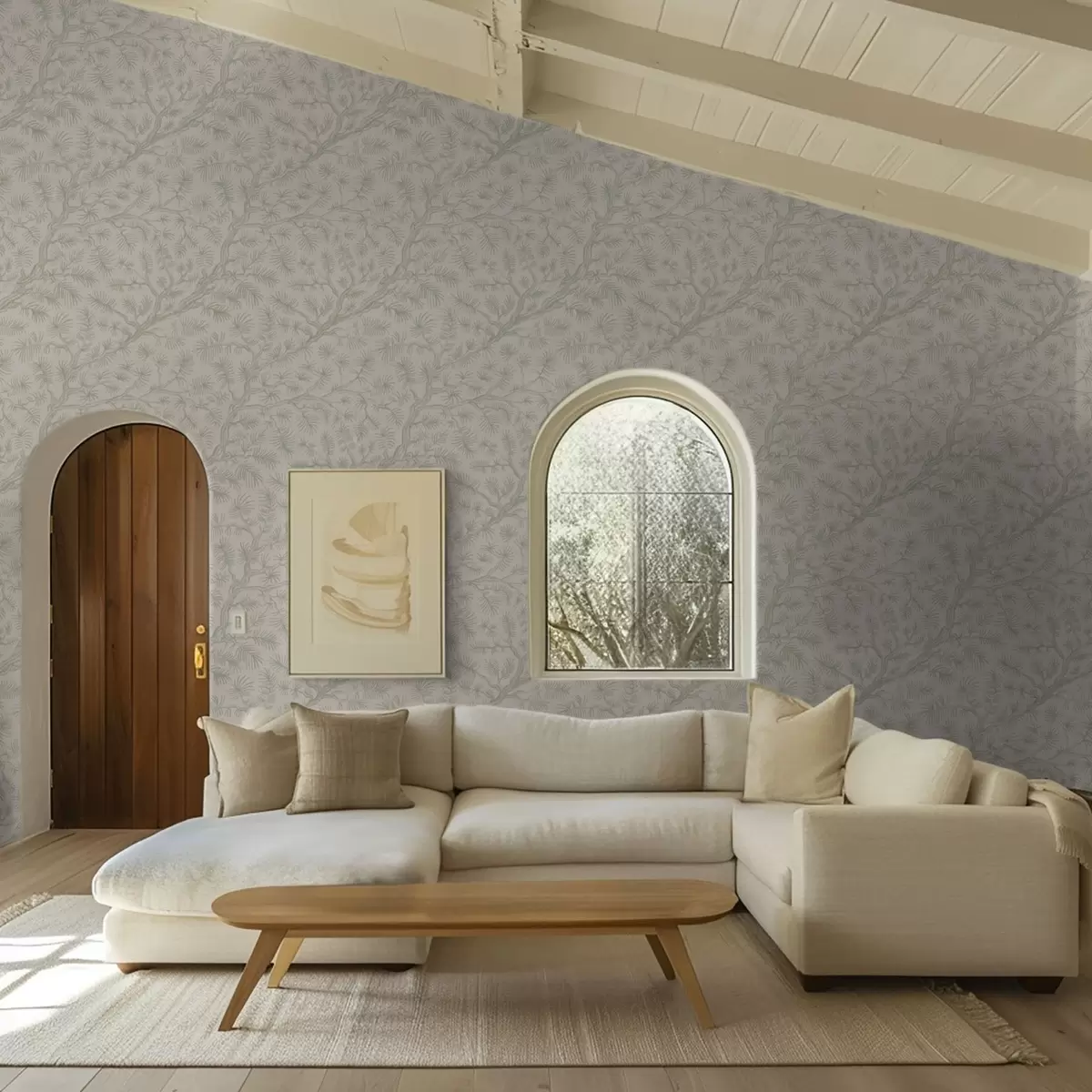 Tapet Ramuri de pin în nuanțe de verde deschis pe fundal bej Nr. a00838v1