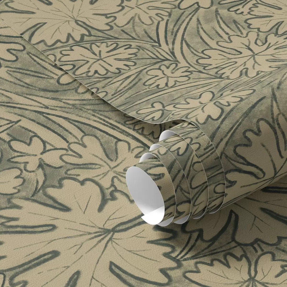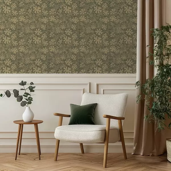 Tapet Frunze și ierburi de câmp în nuanțe de gri-măsliniu Nr. a00847v1
